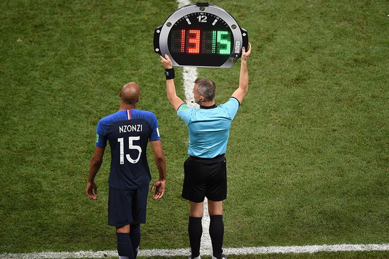 Wasit keempat akan mengumumkan pergantian pemain bola melalui papan elektronik, menunjukkan nomor pemain yang keluar dan nomor pemain yang masuk. Wasit juga berhak menolak pergantian jika prosedur tidak diikuti dengan benar.
